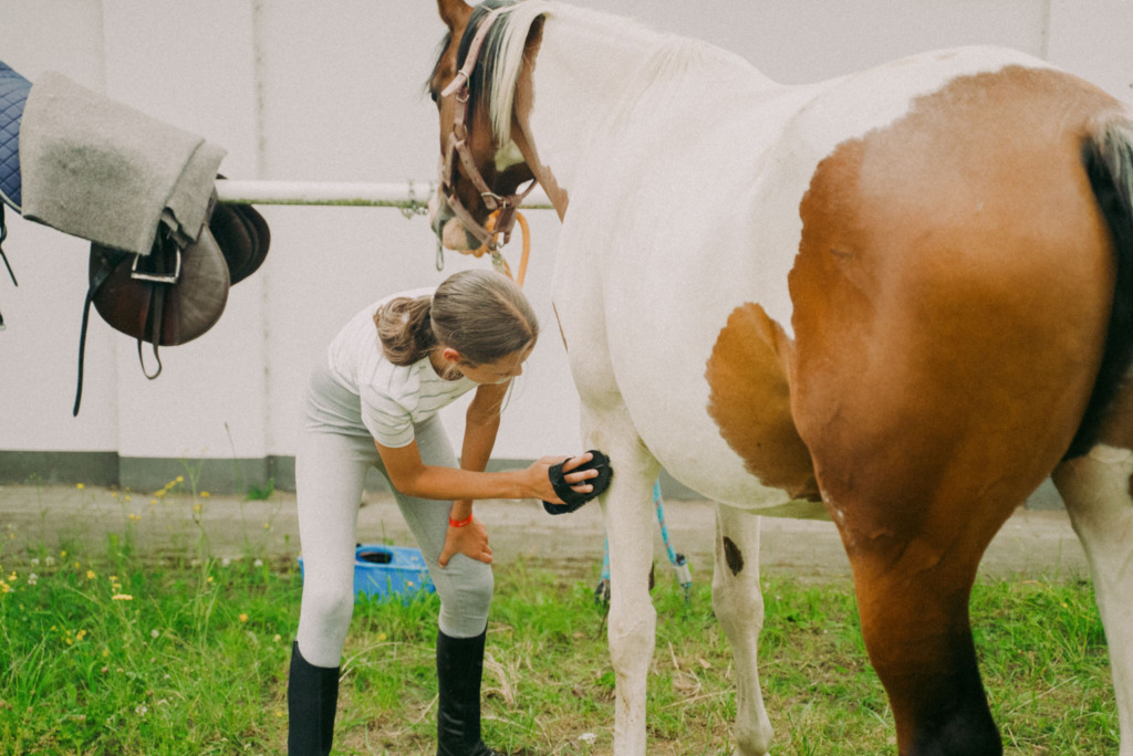 - Zajęcia praktyczne w stajni: nauka czyszczenia konia, siodłania, pielęgnacji oraz obrządku