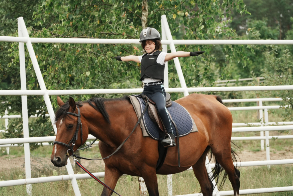 - Jazdy tematyczne: spróbujemy jazdy “na oklep”, czyli bez siodła, jak również elementów woltyżerki, czyli gimnastyki na koniu;